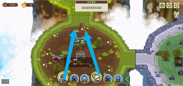 4、将士兵装备好后,选择他们进行攻占,点击并将士兵拖向敌人的领地开始战斗。