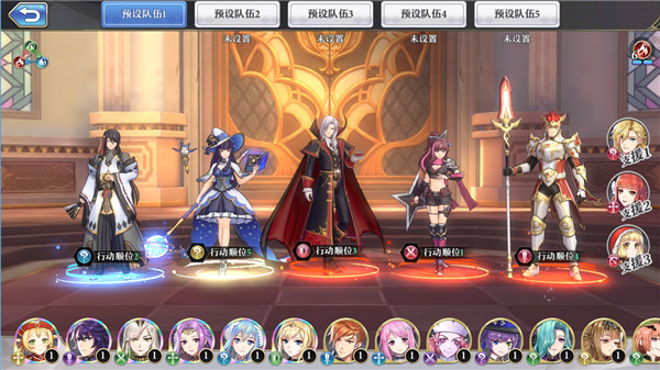 务必抽取德古拉——其链锁机制无可替代。初始阵容推荐:德古拉 + 坦克(如路西法) + 均衡奶妈(伊莎贝拉或维纳斯) + 输出(优先莉莉丝或小丑)。援护优先选择阿波罗,确保队伍拥有至少三火属性加成。