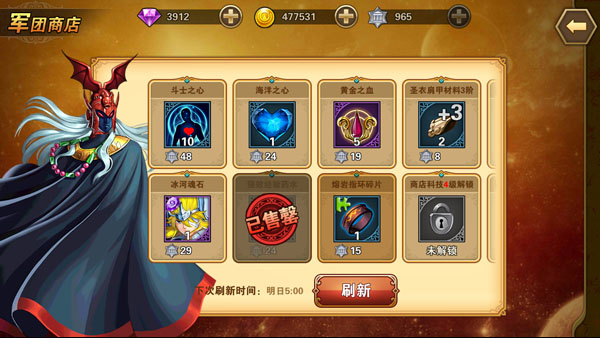 军团商店 使用军团币兑换稀有道具。商品种类与价格随科技等级提升而优化,是获取关键资源的重要渠道。