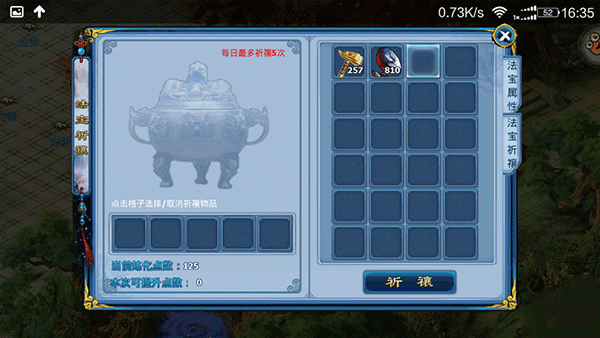 法宝并非一蹴而就的强大,需通过持续养成提升战力。每日可进行五次“祷告”,积累提升点数。除初始赠送的灵石可直接提供1万提升值外,后续主要依赖消耗玄铁与锤子。因此,这些看似占背包的材料实则是法宝进阶的关键资源——“锤子和玄铁砸死我吧”不再是玩笑,而是玩家的真实心声。