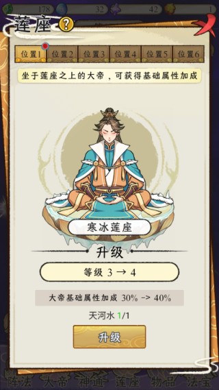 3、莲座可增加坐镇大帝的基础属性;