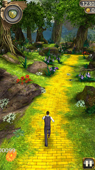 游戏画面相较系列前作更加明亮丰富,森林、山谷、矿道等场景细节精致,营造出如梦似幻的奥兹国氛围。虽然部分高饱和色彩区域可能对路径判断带来轻微挑战,但整体视觉表现力大幅提升,让每一次奔跑都充满新鲜感。操作沿用经典的滑屏机制——上滑跳跃、下滑滑行、左右滑动转弯,配合设备倾斜控制热气球飞行方向,上手简单却极具策略深度。