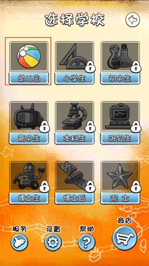 游戏从“幼儿园”开始,只有成功及格毕业,才能解锁“小学生”阶段,逐级向上攀登。