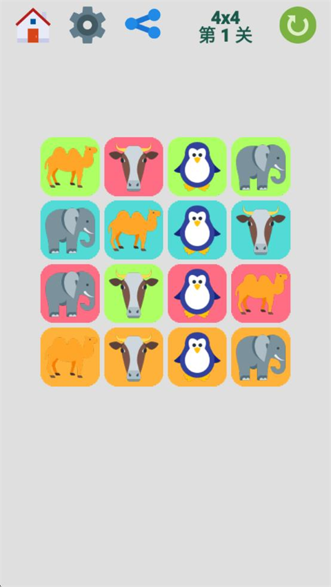 相邻的同色或同种动物可进行交换;当所有同色动物排成一行、同种动物排成一列时,即可顺利通关。