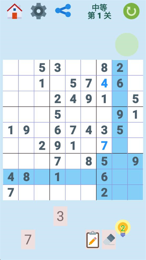 在9×9的格子中填入数字1-9,确保每行、每列及每个3×3小宫格内数字不重复;填满所有空格即为胜利。
