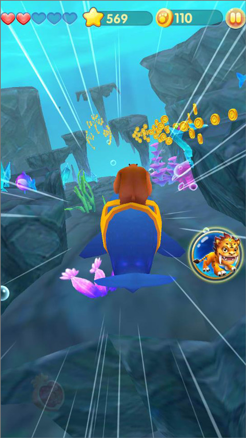 2、关卡中除了常规障碍物之外,还有寄居蟹、陶罐之类的障碍物。小伙伴们要注意这些东西也是不可以碰撞的哦,不过有些东西我们也是可以欺负的,比如萌萌的小鼹鼠就是可以撞击的噢,巧妙的选择碰撞对象可以让你获得更多的分数奖励。