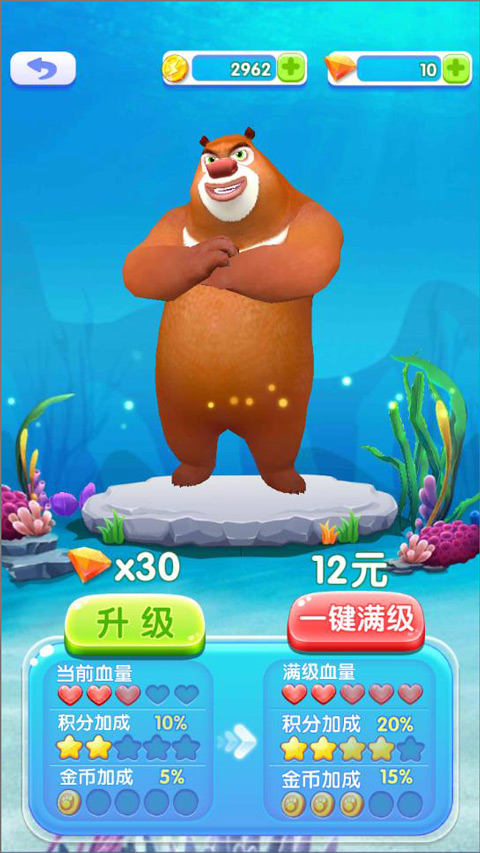 6、机关玩法游戏首创特色机关玩法,各种新奇的关卡障碍,鱼群、巨石、齿轮、火球让你惊奇不已!各种各样的障碍物层出不穷,让你徜徉在熊出没的冒险世界!游戏画面精美细腻,高清场景将带给你前所未有的视觉体验。