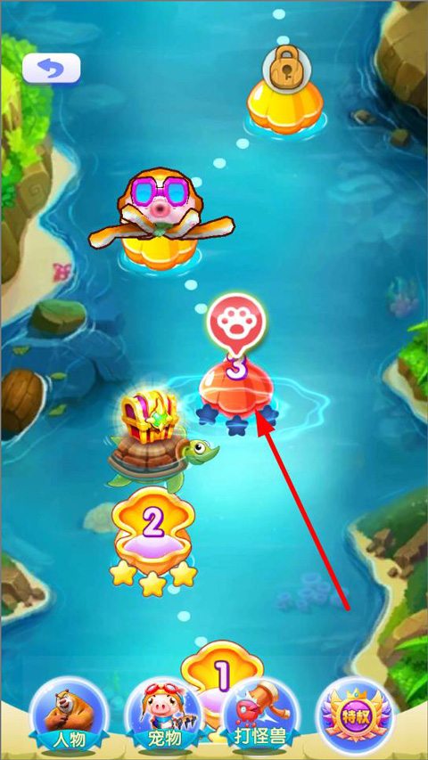 3、打开游戏关卡页面,可以看到人物、宠物、打怪兽等,点击第三关;