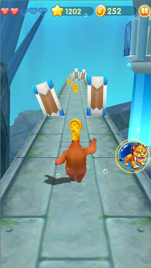 游戏特色机关玩法,各种新奇的关卡障碍,鱼群、巨石、齿轮、火球让你惊奇不已!各种各样的障碍物层出不穷,让你徜徉在熊出没的冒险世界!