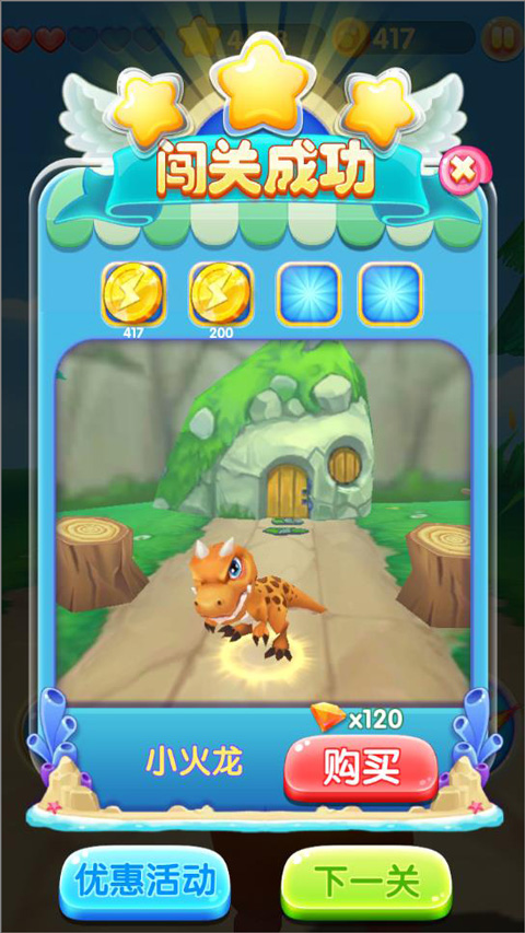 4、第三关玩家需要控制人物攻击怪兽,并成功抵达终点即可获得掉落的奖励(钻石、金币等);