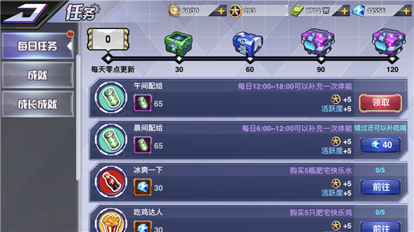 Tips9:每日任务,在每日任务中,在固定时间段中可以领取到60体力,每天三次,共180体力。