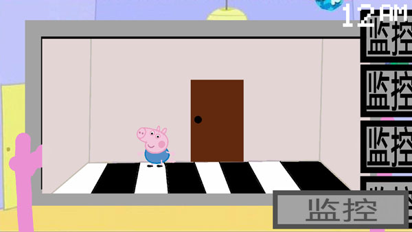 游戏以第一人称视角展开,玩家需在有限资源与时间压力下,通过闭路电视监控多个房间,实时追踪“佩奇”及其他角色的移动路径。你可以播放特定音乐干扰其行动,或戴上伪装面具暂时隐藏自己。一旦被发现,将直接导致游戏失败。整个过程紧张刺激,考验你的观察力、反应速度与策略规划能力。