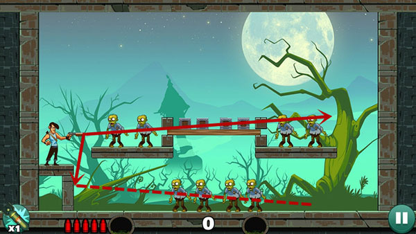 《愚蠢的僵尸》以“物理反弹+场景互动”为核心机制,玩家需在每关限定的子弹数量下,通过调整射击角度与力度,让子弹在墙壁、障碍物之间多次弹射,精准命中所有僵尸。部分关卡还引入可移动设施、爆炸油桶、坠落木箱等动态元素,大幅提升策略深度与解谜趣味。