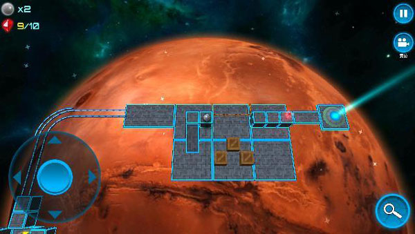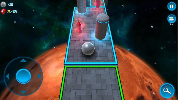 第一关作为教学关卡,重点熟悉基础操作:左上角显示当前生命值(默认3条),右上角提供暂停与镜头复位功能。滑动屏幕可自由调整视角,长按右下角放大镜按钮则切换至鸟瞰模式,便于观察全局布局。关卡中分布10颗可收集水晶,部分藏于隐蔽角落,鼓励探索。