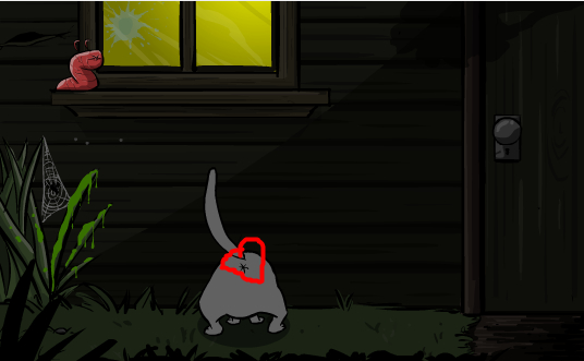 和上面一样,也得试探性的点一次猫,它会转过身来看着虫子,不过它不会来攻击小虫子,只需要点一下红圈里的部分吸引猫的注意力,就能进入新场景。