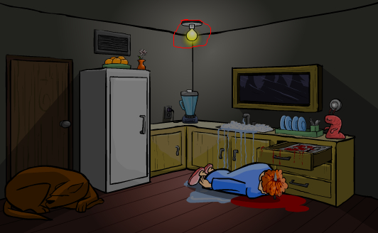 点搅拌机盖,点橙子,点开关,点搅拌机盖,汁洒,女人过去,点水龙头,点抽屉,点刀,女人死,点玻璃旁圆钮,多点几次,左上角窗开,点虫,点灯,点暖气通道