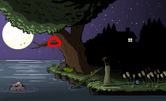 游戏开始,先点一下树枝,让它落在水中。