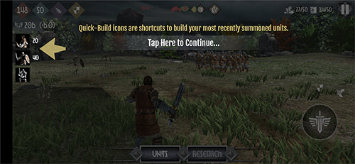 可召唤包括弓箭手、长枪兵、骑士、法师、巨人、弹射器乃至精灵与矮人在内的数十种单位,在大规模混战中与你共同抵御潮水般的敌人。