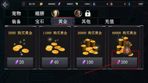 接着点击“黄金”栏目,使用已购得的钻石兑换黄金货币。